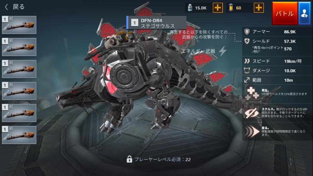 - 最強格の恐竜。レベル次第で被ダメージよりも回復量が上回ることもある。