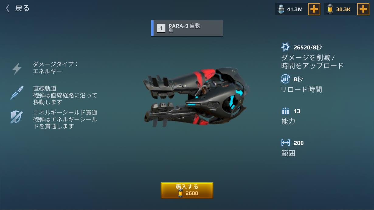 | 26520/8 | 8 | 200 | 1657.5 | 13 | 0 | エネルギーシールド貫通 | 2600 | 直線 | エネルギー | 5 |